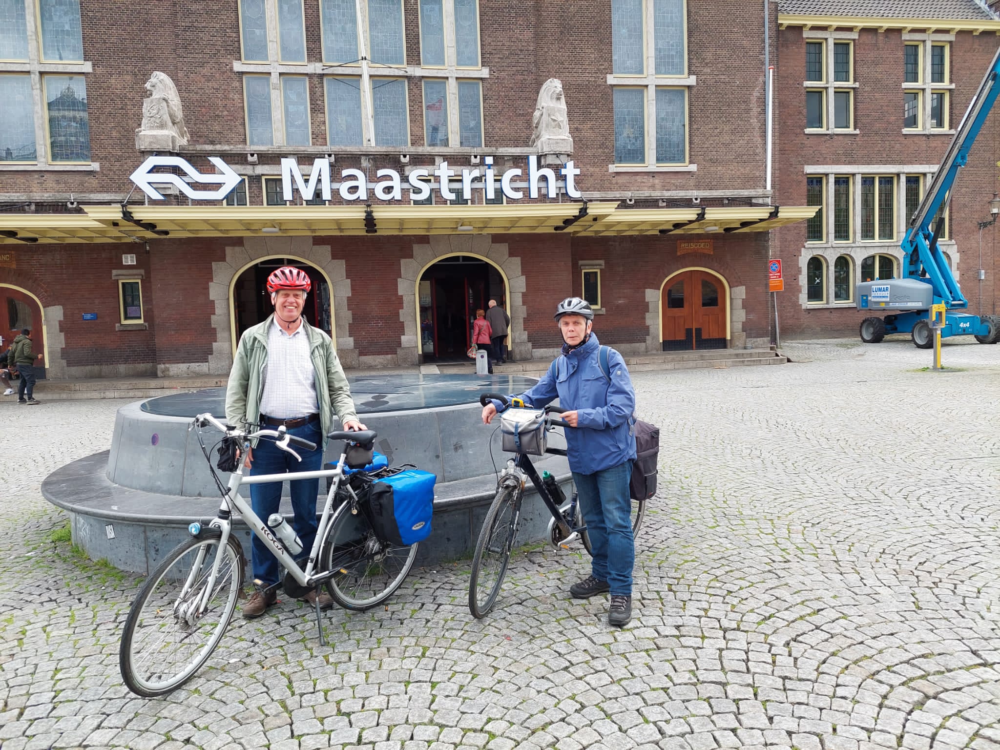 Na uitzwaai-zwaai door het thuisfront en het veilig stellen van een schaarse fietsplek in de trein arriveerden we mooi op tijd in Maastricht. Met een eerste stuk naar Luik dat volgens de gegeven info maar een kleine 25 km zou zijn, maar teminste 10 km langer bleek, begon het meteen al goed; gaat dat straks de hele route zo? Zo'n 40% langere trajecten? Het bleek uiteindelijk een begindingetje,. Toch 85 km op een ingekorte dag, een stevig begin.